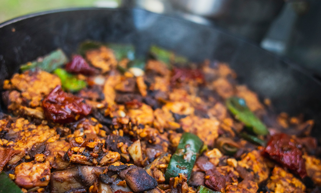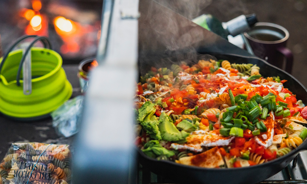 This is meant to be a very flexible dish, a spin on a camping classic that you can modify as desired. For me, the primary ingredients are the flavorful Chipotle sauce and of, course, cheese! I like this meal because it’s easy to incorporate a wide variety of available ingredients, including canned options, so you can add or subtract weight as needed. It also creates few dirty dishes, it’s great for sharing, and it’s very tasty. So let’s make some Spicy Tempeh Mac & Cheese.